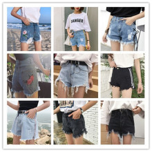 韩国ulzzang原宿风bf高腰水洗不规则毛边牛仔裤女宽松阔腿短裤女