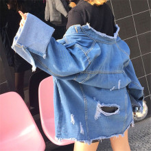2017春秋女装韩版新款复古毛烂边bf宽松上衣潮破洞学生女牛仔外套