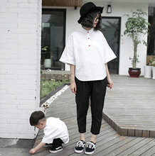 2016夏季韩版宽松三粒扣简约风立领衬衫+休闲裤子女学生时尚套装