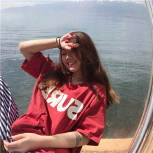 韩国原宿风ulzzang夏韩版宽松印花中长款短袖红色T恤裙女学生上衣