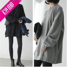 17春秋季新款韩版潮原宿风宽松中长款学生长袖套头圆领卫衣外套女