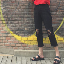 黑色破洞牛仔裤女高腰九分裤夏韩版潮宽松乞丐裤韩国ulzzang女裤