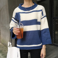 韩国ulzzang原宿风bf秋冬韩版潮宽松拼色长袖套头学生毛衣外套女