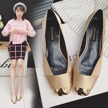 平底鞋女单鞋春秋2017新款金色小方头浅口船鞋粗跟低跟单鞋女平底