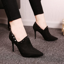 春秋深口尖头高跟单鞋女细跟高跟鞋铆钉罐罐鞋性感侧拉链单靴时尚