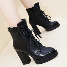 欧美潮秋冬新款高跟短靴尖头细跟女靴马丁靴防水台及踝靴女鞋冬靴