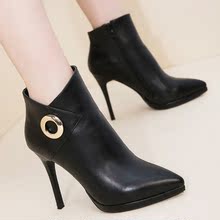 2016冬季新款高跟短筒尖头女靴棉靴细跟马丁靴防水台短靴女鞋女靴