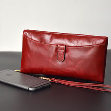 超大容量大气 油蜡皮牛皮长款软真皮手机大钞夹女士手拿手提钱包