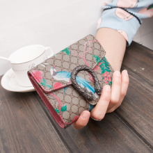 2017新款欧美风大牌彩绘真皮短款钱包女牛皮搭扣潮流气质古典皮夹