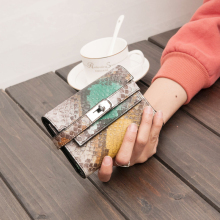 2017新款韩版蛇纹小钱包女短款真皮超薄钱夹迷你卡位简约搭扣皮夹
