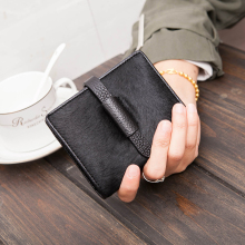 2017春夏新款真皮短款抽带钱包女 潮流马毛豹纹牛皮小皮夹欧美风