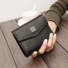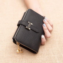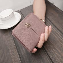 2016新款大牌超薄真皮短款小钱包女时尚两折搭扣软牛皮卡位钱夹潮
