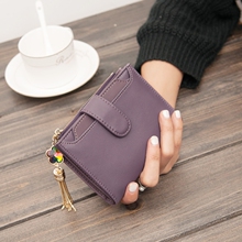 2016新款欧美风短款流苏真皮竖款女 简约搭扣复古休闲潮流小皮夹