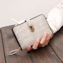 2015新款大牌欧美真皮短款小钱包女搭扣横款韩版编织拉链羊皮卡夹