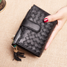 2017新款欧美羊皮编织流苏短款钱包女真皮三折时尚潮小零钱包皮夹