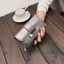 2016新款欧美大牌大容量简约鳄鱼纹真牛皮潮长款钱包女手拿包皮夹