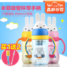 米菲吸管杯 宝宝吸管杯婴儿学饮杯防漏吸管杯带手柄带提绳