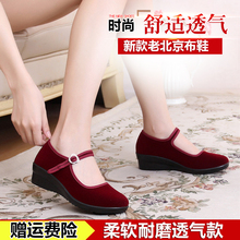 老北京布鞋女鞋中跟单鞋坡跟黑一代工装工作鞋红色舞蹈妈妈跳舞鞋