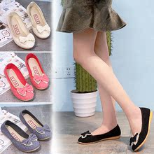 春秋季时尚布鞋女款低帮套脚时尚休闲单鞋中老年妈妈鞋蝴蝶结女鞋