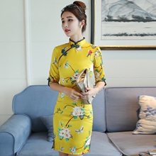 小花旦新款复古修身旗袍改良旗袍裙日常短款时尚少女丝绸连衣裙