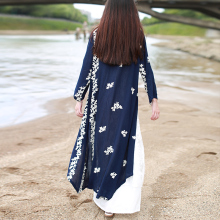 2017春夏防晒衫民族风复古文艺绣花中长款薄款风衣外套开衫空调衫