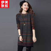 中长款套头毛衣女秋冬加厚条纹针织衫女装春装2016新款潮宽松上衣