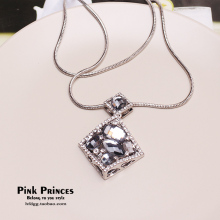 韩国韩版方形水晶吊坠配饰长款项链简约宝石百搭毛衣链欧美装饰品