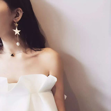 韩国长流苏星星珍珠吊坠长款耳环女百搭个性夸张耳钉耳坠气质简约