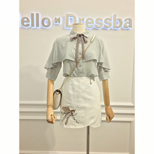 复古糖果色甜美翻领系带衬衫女 夏季新款五分袖学生衬衣