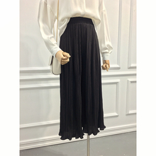 复古压褶纹理百褶长裤子 高腰宽松显瘦阔腿女裤纯色