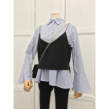 韩版春季打底长袖喇叭袖蓝条纹衬衫吊带两件套