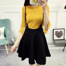 中长款纯色两口袋直筒背带裙连衣裙2017春装夏季新款女装学生裙子