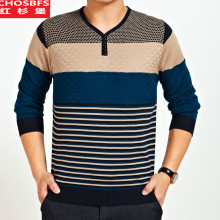 春装新款男士长袖t恤上衣服V领打底衫韩版大码中年小衫男装体恤衫