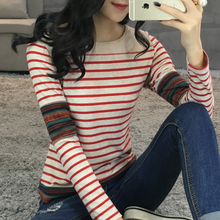 横条纹长袖T恤女修身学生内搭上衣2016春装新款大码百搭打底衫t桖