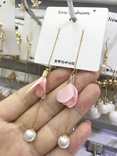 2件包邮新款韩国百搭简约气质耳环女耳钉小花朵长款流苏珍珠耳环