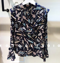 2017春韩国荷叶边碎花衬衫女长袖喇叭袖印花衬衣雪纺衫NWBLHB0100