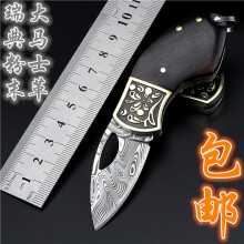 瑞典粉末大马士革折刀折叠刀非军刀迷你袖珍防身随身钥匙圈小刀具