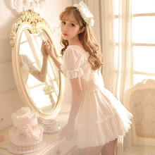 糖果雨2017夏季新款日系甜美连衣裙夏小清新修身短袖公主雪纺裙女