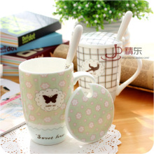 创意小清新马克杯简约陶瓷杯子牛奶咖啡办公室情侣喝水杯带盖带勺