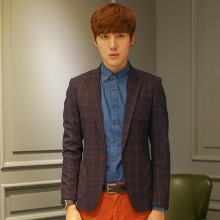 MUT春季韩版小西装 男士修身休闲西服 青年时尚潮格子短款外套