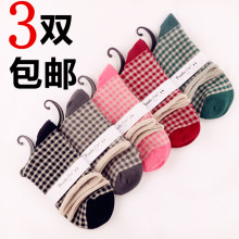 日系春秋女袜中筒袜森系英伦格子学生卷边复古堆堆袜纯棉袜短袜子