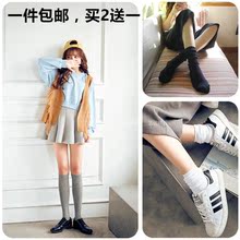 2双包邮三条杠袜子女堆堆袜条纹夏薄纯棉中长筒原宿滑板袜