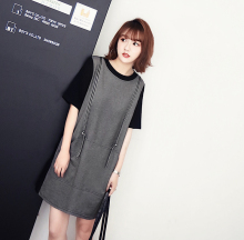 LANGBOOM 17夏装 假两件套吊带背带设计短袖冰丝连衣裙