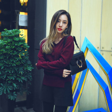 LUNA2017韩版春秋百搭酒红色圆领bf风卫衣宽松上衣女套头薄款女装