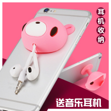iphone6手机壳苹果6Splus硅胶套卡通支架挂绳耳机收纳4.7女款可爱