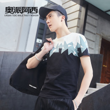短袖t恤男潮流修身夏季韩版学生2017新款圆领个性图案印花体恤薄