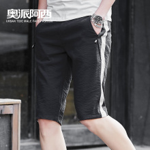 运动短裤男五分裤夏季2017新款韩版条纹两条杠光头强裤子休闲中裤