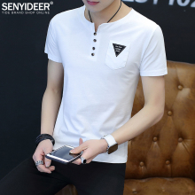 短袖t恤男v领宽松夏季韩版潮流男学生修身纯色打底衫半袖体恤衣服