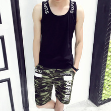 迷彩品质短袖T恤套装男士夏季运动服休闲跑步短裤 学生健身背心男