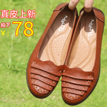 夏季2017新款妈妈鞋真皮软底单鞋平跟中老年皮鞋休闲平底中年女鞋